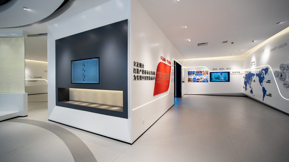 展廳從參觀者最關(guān)心的內(nèi)容出發(fā),著重展示企業(yè)科技研發(fā)人才、設(shè)備、創(chuàng)新成果等,以簡(jiǎn)練的空間語(yǔ)言, 營(yíng)造工業(yè)4.0時(shí)代的企業(yè)新貌,突出企業(yè)發(fā)展的核心動(dòng)力。 |