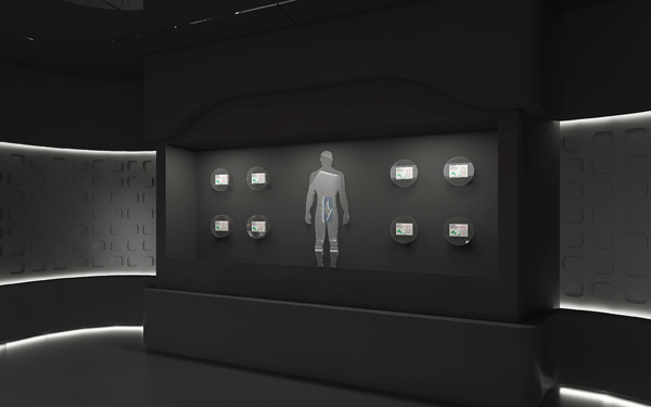 互動(dòng)桌面配合后方透明OLED屏幕,綜合展示藥品對(duì)于人體的作用與療效 |