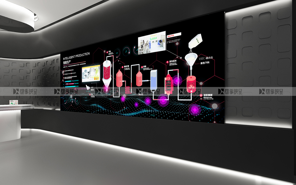 生產(chǎn)流程展示屏,參觀者可觸控互動(dòng),實(shí)現(xiàn)流程動(dòng)畫與現(xiàn)場(chǎng)影像的切換,讓參觀過(guò)程更為有趣生動(dòng)。 |