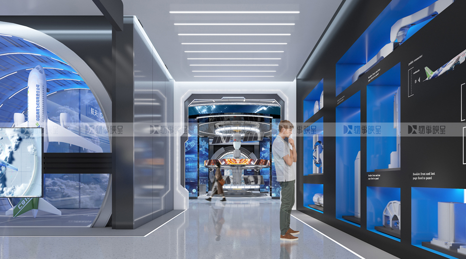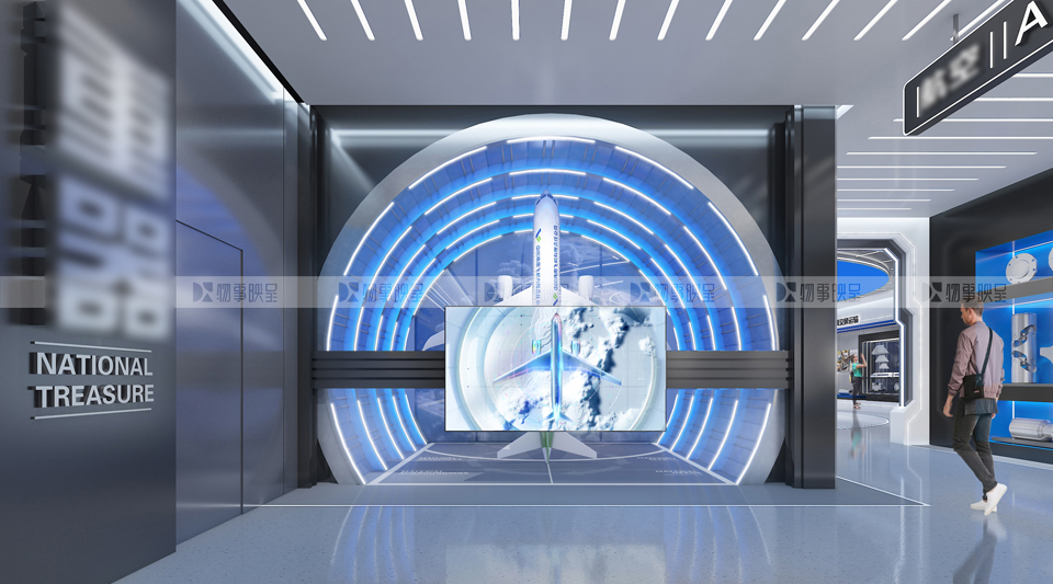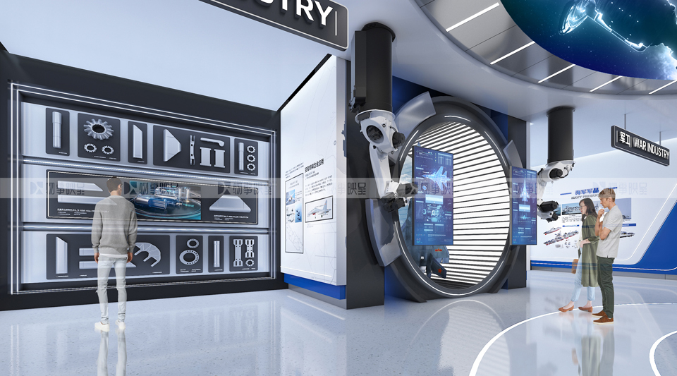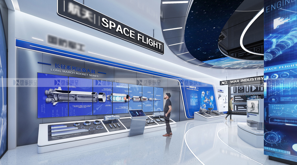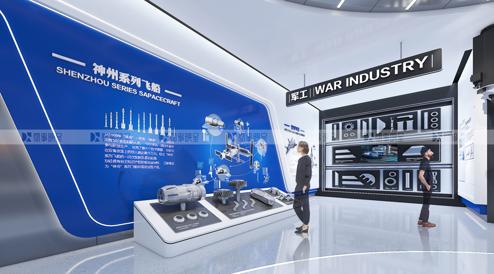 展項(xiàng)打造金屬質(zhì)感通道,創(chuàng)造期待感,同時(shí)規(guī)避柱點(diǎn)密集問題。 核心展項(xiàng),既展示中國(guó)科研人的浪漫,又通過多媒體圓環(huán)體現(xiàn)對(duì)接震撼。 虛實(shí)結(jié)合,重點(diǎn)展現(xiàn)哈東輕的精神。 |